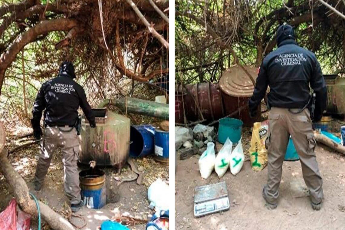 Una vez localizado el laboratorio, los agentes de la Guardia Nacional aseguraron el área y procedieron a entregarla a la Policía Federal Ministerial (PFM) y al personal de Servicios Periciales para llevar a cabo las inspecciones y labores de investigación correspondientes.