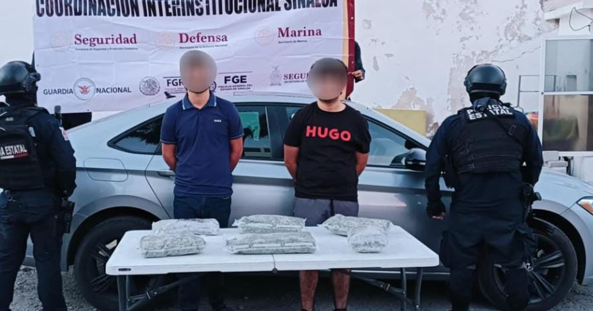 Mazatlán, Sinaloa.— Dos hombres fueron detenidos y asegurados con cerca de 3 kg de presunta marihuana durante un operativo en Potrero de Carrasco; la intervención ocurrió el , informaron autoridades.